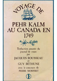 ROUSSEAU, Jacques et Guy Béthune, avec le concours de Pierre Morisset,. Voyage de Pehr Kalm au Canada en 1749, traduction annotée du journal de route, Édition Pierre Tisseyre, Montréal, 1977, 674 p.
