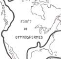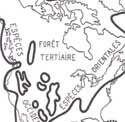 CARTE L. Le continent nord-américain durant le Crétacé inférieur, la forêt de gymnospermes.
