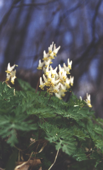 Dicentra cucullaria (Linné) Bernhardi. 46° 38' 15,5" N - 072° 06' 14,2" O, Capitale-Nationale, MRC Portneuf, Deschambault-Grondines, Grondines-Station, 4e rang, érablière riche, le jeudi 4 mai 1995. Photo Dicentra_cucullaria_950501_11a. (Dicentra)