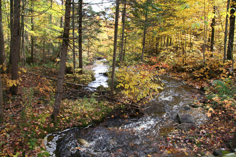 route de la Station, ruisseau enjambé par le chemin de bois qui mène à l'érablière Pierre Cossette, le samedi 10 octobre 2009,