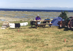 L'éditrice et photographe de ces pages et son campement à Baie-Sainte-Claire, le mercredi 12