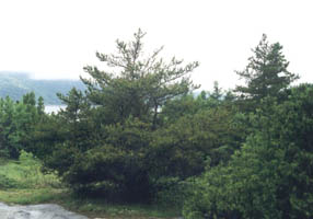 48° 08' 13.2" N - 069° 42' 52.0" O, Côte-Nord, La Haute-Côte-Nord, Tadoussac, Parc du Saguenay, sentier de la Pointe de l'Islet, au confluent de fjord du Saguenay et du fleuve Saint-Laurent, Pinus_divaricata_014_800 - Solidago_puberula_012_800 - 20010618/11 - Pointe_de_l_Islet_002_400_200.