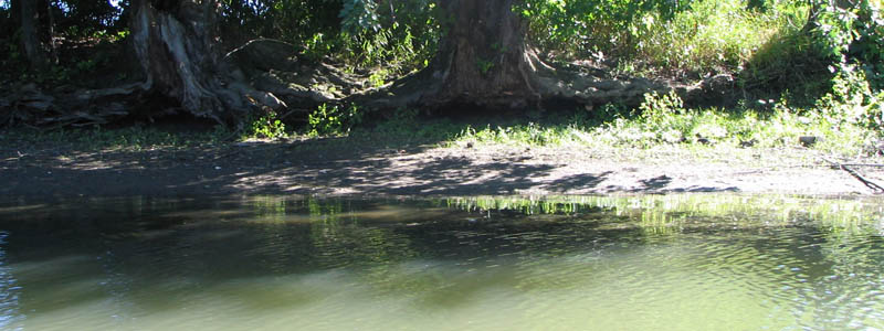 46° 08' 13.8" N - 073° 02' 00.8" O, Réserve de la biosphère du Lac-Saint-Pierre, Lanaudière, MRC D'Autray, Saint-Ignace-de-Loyaula, île Cardin, système racinaire de grands arbres, mis à nu par les variations saisonnières du niveau de l'eau et l'action mécanique des glaces, le samedi 10 septembre 2005. Photo Saint_Ignace_de_Loyola_006_800_300.