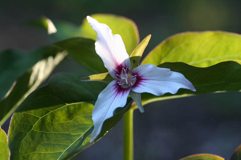 Trillium undulatum Willdenow. 46° 35' 51.0" N - 072° 16' 01.9" O, Mauricie, MRC Les Chenaux, Saint-Prosper, terre à bois de Roger Leduc, route des 1er et 2e rangs Saint-Édouard, le dimanche 16 mai 2010, photo macro Trillium_undulatum_004_800.(Souche)