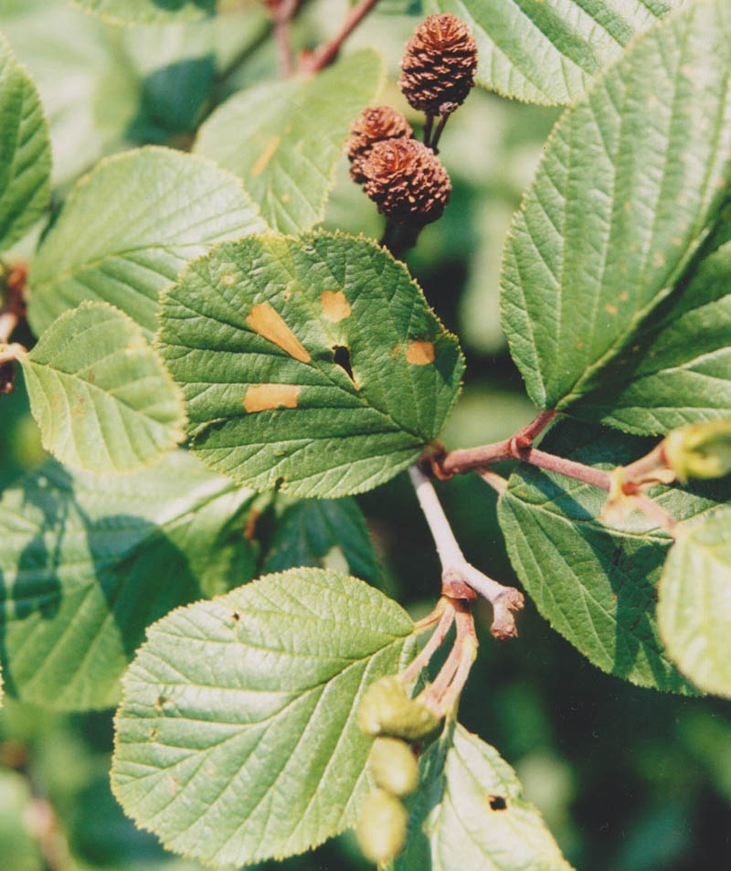 — Arbrisseau ou petit arbre pouvant atteindre 3 mètres ; jeunes branches à pubescence persistante ; feuilles ovales-arrondies, à face inférieure toujours couverte d'une pubescence soyeuse ; nucule ailée de chaque côté. Floraison printanière. Région maritime du Québec.