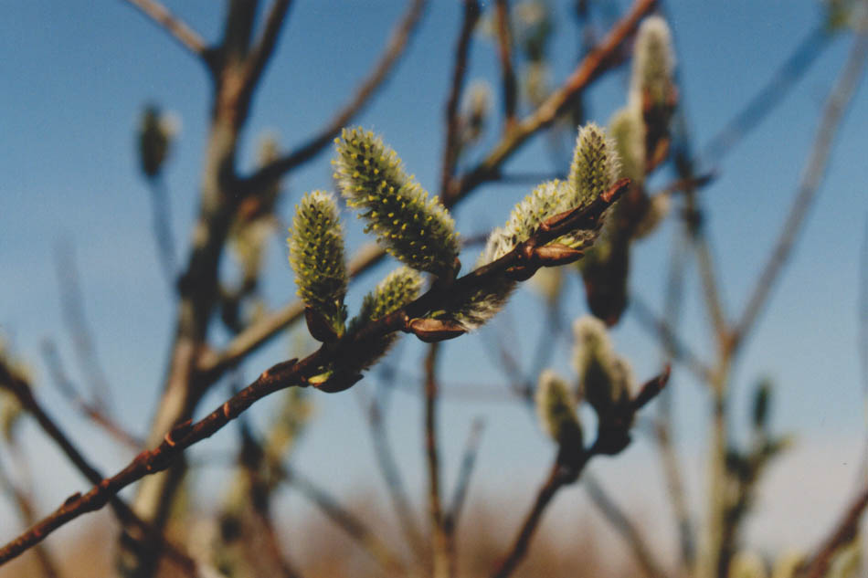 salicacée typique (Salix discolor) : les chatons mâles et femelles sont