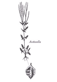 — Plante annuelle ou vivace, dioïque, à saveur très acide, glabre ; tige (longueur 10-40 cm) grêle, dressée ou presque, à rhizome ligneux et horizontal ; feuilles hastées, à oreillettes linéaires-aiguës ; sépales intérieurs non développés en ailes à la maturité ; achaine granuleux. Floraison estivale. Lieux secs, terrains sablonneux dans toute l'Amérique du Nord, sauf l'extrême-nord.