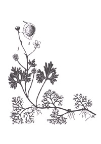 — Plante aquatique ou partiellement émergée, ramifiée, quelquefois très longue ; feuilles (longueur 3-8 cm) plusieurs fois divisées en segments capillaires ; fleurs jaunes, grandes (diamètre 15-25 mm) ; achaines marginés au moins vers la base. Floraison printanière. Ouest du Québec. Plutôt rare. (Synonyme : R. delphinifolius Torrey)
