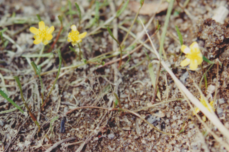 Ranunculus reptans Linné. 46° 34' 35" N - 72° 12' 28" O, Mauricie, MRC Les Chenaux, Sainte-Anne-de-la-Pérade, Commune Sainte-Marie, sur les battures du fleuve Saint-Laurent, le vendredi 16 juillet 1993, Ranunculus_reptans_0383_12_800.