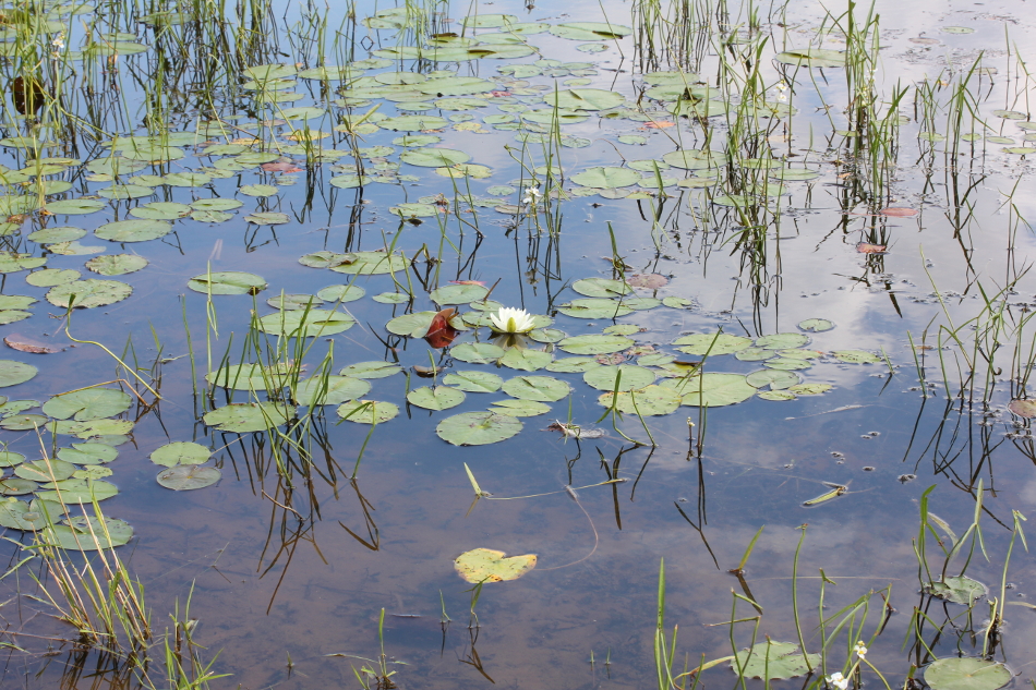 45º 34' 21.5" N - 71º 59' 25.0 O, Estrie, MRC Le Val-Saint-François, rivière Watopeka, Windsor, Camping et Parc Watopeka, rue Georges-Guilbault, 13:01 le mardi 8 août 2017, Windsor_014_950.  Nymphea tuberosa et plantes aquatiques.