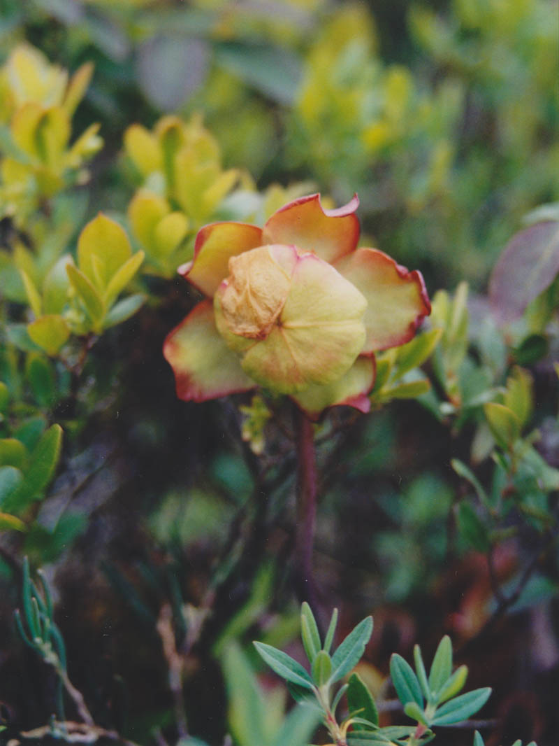 Sarracenia purpurea Linné. 48° 33' 00" N - 058° 35' 00" O, Terre-Neuve-et-Labrador, tourbière entre Stephenville et la Transcanadienne, route des ancêtres Français (nº 460), le samedi 6 juillet 1996, 960701_21_800.