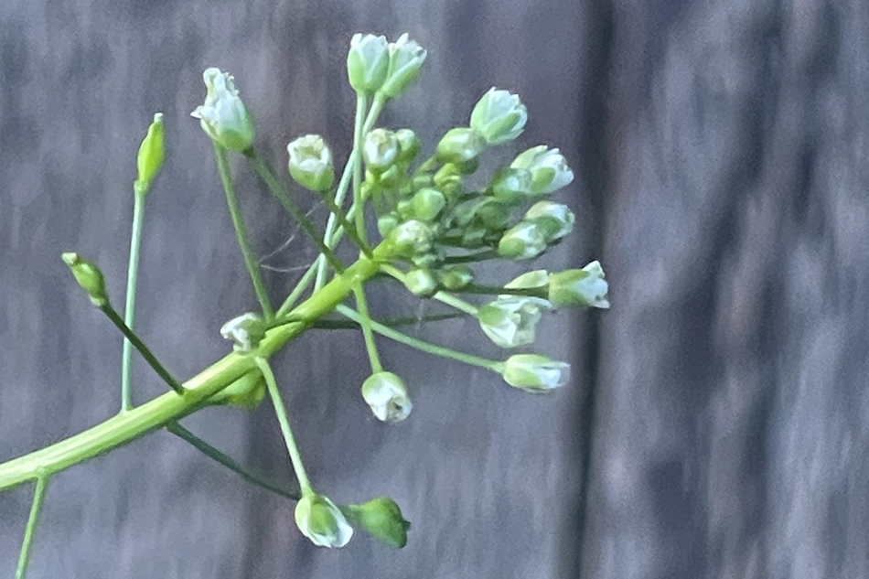 Capsella bursa-pastoris (Linné) Medicus. 46° 35' 53.0" N - 072° 15' 38.3" O, Mauricie, MRC Les Chenaux, , Saint-Prosper-de-Champlain, chemin des Trente-Trois, adossé à la shed à bois, 0512 le dimanche 6 juin 2021, Capsella_bursa_pastoris_022_950_633.