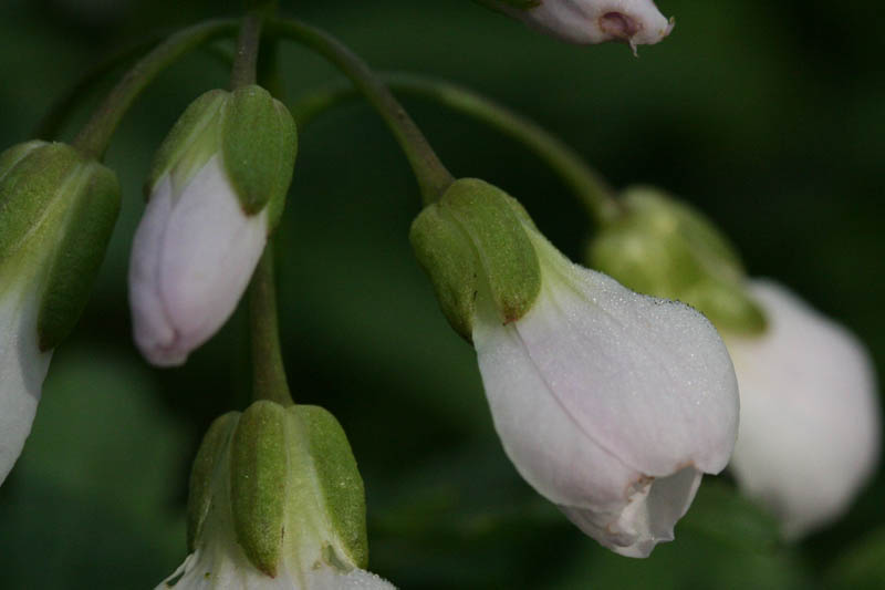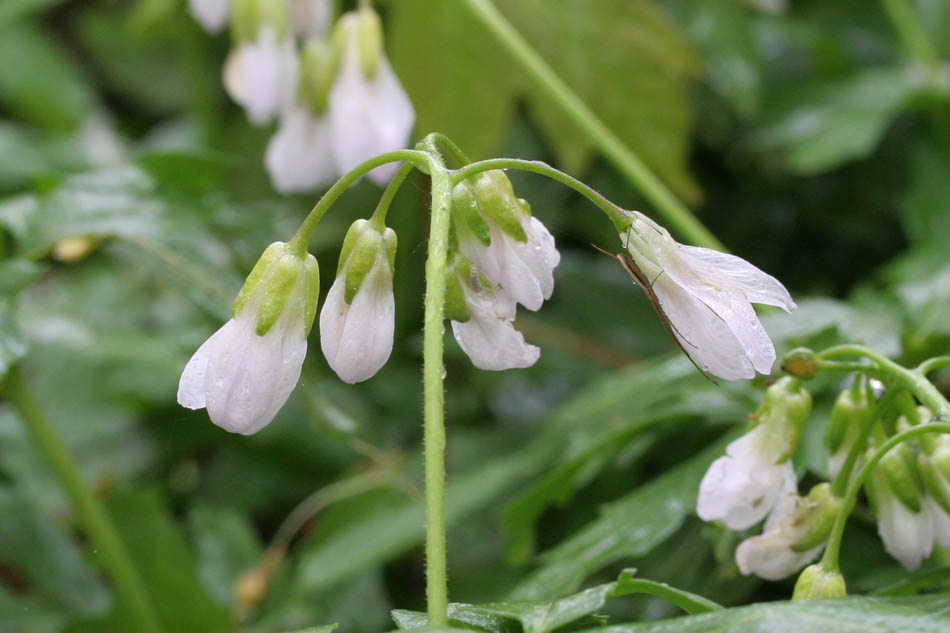 — Rhizome profond, à articles se séparant facilement ; tige (longueur 20-40 cm) ; feuilles caulinaires 3, rapprochées ou verticillées, presque entièrement tripartites, à divisions lancéolées ou oblongues ; fleurs (diamètre 15-20 mm) blanches ou roses ; siliques (longueur 2-4 cm) linéaires. Floraison printanière. Bois riches. Ouest du Québec.