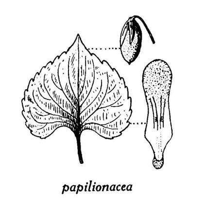 un pédoncule court, incliné ; fruit (longueur 10-15 mm) ; graines brun foncé. Sud-ouest du Québec.