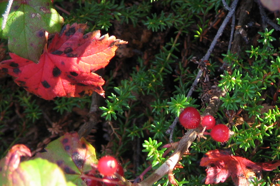 Ribes glandulosum Grauer — Gadellier glanduleux. — (Fetid currant) et Empetrum nigrum Linné. 53º 47' 13.1" N - 079º 04' 43.4" O, Nord-du-Québec, Municipalité de la Baie-James, Terres réservées aux Cris, Chisasibi, rive de la baie James, 06:32 le samedi 30 juillet 2005, Ribes_glandulosum_001_950.