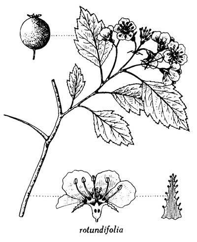 30. Crataegus rotundifolia Moench. — Aubépine à feuilles rondes. — (Round-leaved hawthorn).