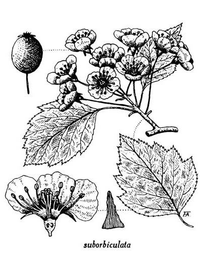 4. Crataegus suborbiculata Sargent. — Aubépine suborbiculaire. — (Suborbicular hawthorn, Caughnawaga thorn).