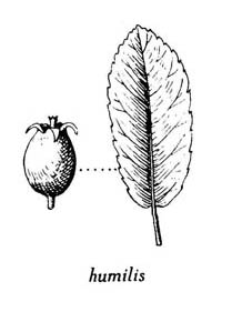 Comme son nom l'indique, l'A. humilis est toujours buissonneux et très bas. Il se propage par drageonnage. Les tiges s'étalent irrégulièrement sur le sol, s'y enracinent et émettent des pousses dressées et ramifiées, finissant par former des clones denses, circulaires et abondamment fructifères.