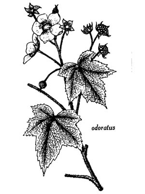 2. Rubus odoratus Linné. — Ronce odorante. — Framboisier sauvage, Calottes. — (Flowering raspberry).