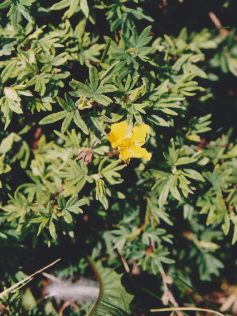 Potentilla fruticosa Linné. Gaspésie/Iles-de-la-Madeleine, MRC Le Rocher-Percé, Île Bonaventure, chemin du Roy, le jeudi 29 juin 1995, Potentilla_fruticosa_950630_1a_950.