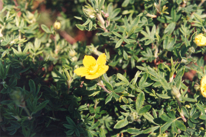 Potentilla fruticosa Linné. Gaspésie/Iles-de-la-Madeleine, MRC Le Rocher-Percé, Île Bonaventure, chemin du Roy, le jeudi 29 juin 1995, Potentilla_fruticosa_950629_13a_800.