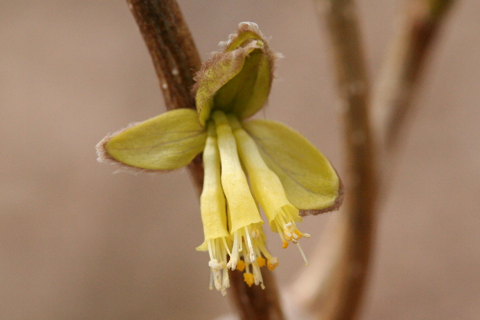 Dirca palustris Linné. 46° 38' 22.5" N - 72° 05' 53.0" O, Capitale-Nationale, MRC Portneuf, Deschambault-Grondines, Grondines-Station, lieu non organisé, 14:05 le lundi 19 avril 2010, Dirca_palustris_020_950.