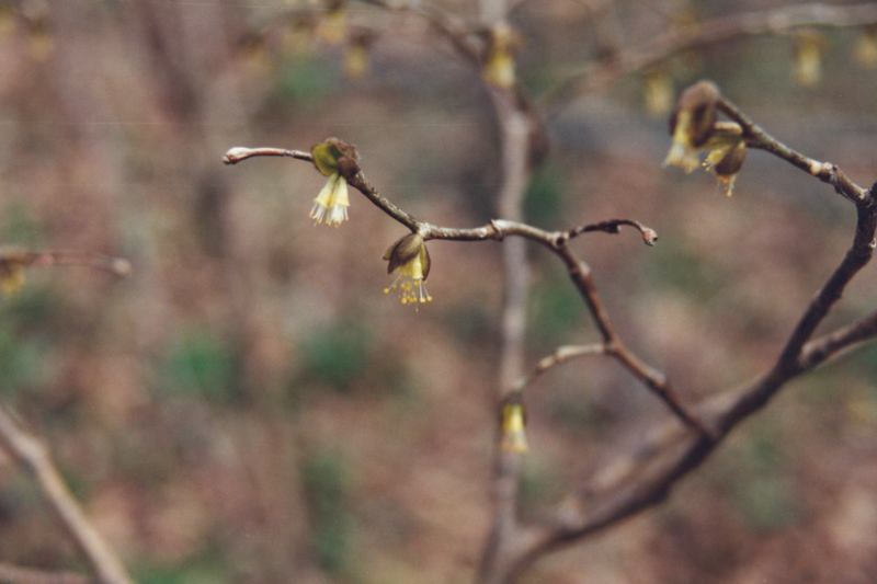 Dirca palustris Linné. 46° 38' 15,5" N - 072° 06' 14,2" O, Capitale-Nationale, MRC Portneuf, Deschambault-Grondines, Grondines-Station, 4e rang, érablière riche, le jeudi 4 mai 1995, Dirca_palustris_950501_9a_800.