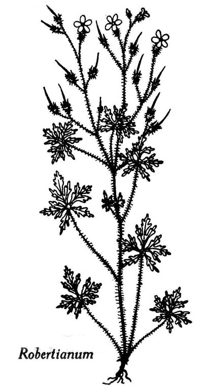1. Geranium robertianum Linné. — Géranium de Robert. — Herbe à Robert, Herbe à l'esquinancie. — (Red robin).