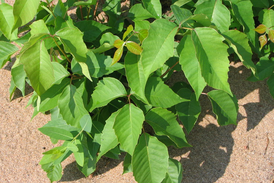 Rhus radicans Linné [ Toxicodendron radicans (L.) Kuntze ] ― Sumac grimpant. ― Herbe à la puce, Bois de chien. ― (Poison ivy). 46° 30' 09.9" N - 072° 14' 40.4" O, Mauricie, MRC Les Chenaux, Batiscan, plage du fleuve Saint-Laurent, 09:55 le vendredi 4 août 2006, Rhus_radicans_002_950.