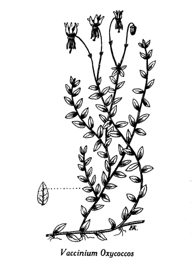 — Tiges filiformes, rampantes, à courtes branches dressées (longueur 3-15 cm) ; feuilles (longueur 4-15 mm) ovées, aiguës ; pédicelles portant deux petites bractées vers le milieu ou au-dessous du milieu ; fruit globuleux (diam. 6-10 mm), ponctué à l'état vert, rouge, puis noirâtre à la maturité et alors dépourvu de ponctuations. Floraison estivale. Tourbières à Sphaignes. Général dans son habitat, dans le Québec. [Synonyme : Oxycoccus microcarpus Turez.].