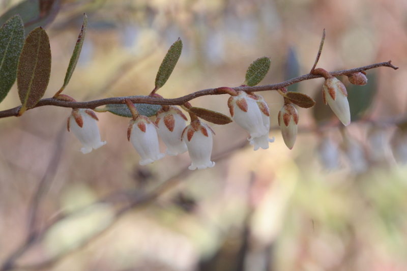 Fleurs en grappes feuillées unilatérales. Calice en étoile sous-tendu par 2 bractéolés. Corolle urcéolée, à 5 lobes beaucoup plus courts que le tube. Étamines 10, incluses. Ovaire 5-loculaire, sillonné. Capsule déprimée.