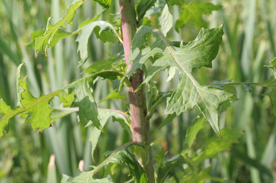 Lactuca biennis (Moench) Fernald. 46º 35' 52.6" N - 072º 15' 38.8" O, Mauricie, MRC Les Chenaux, Saint-Prosper, 1er rang Saint-Édouard, 09:49 le dimanche 31 juillet 2011, Lactuca_biennis_010_800.