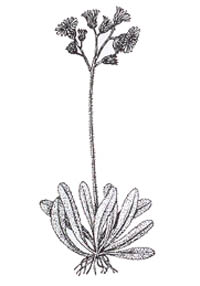 de poils noirs glanduleux ; feuilles spatulées-oblongues ; capitules (diamètre 15-25