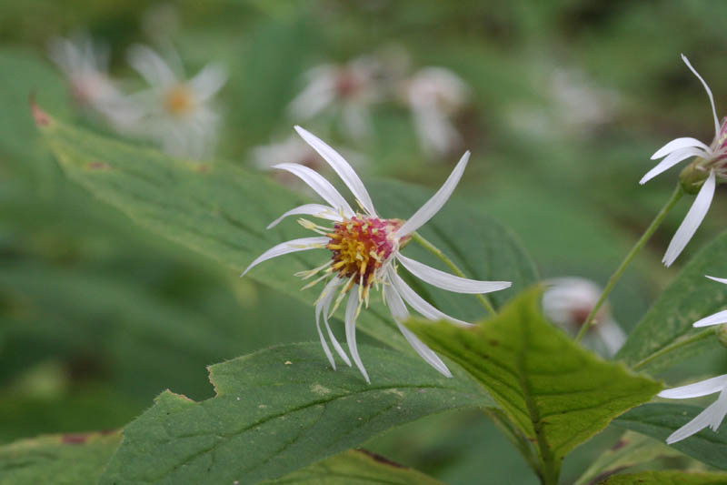 Rayons (longueur 5-7 mm) ; feuilles un peu dentées, courtement