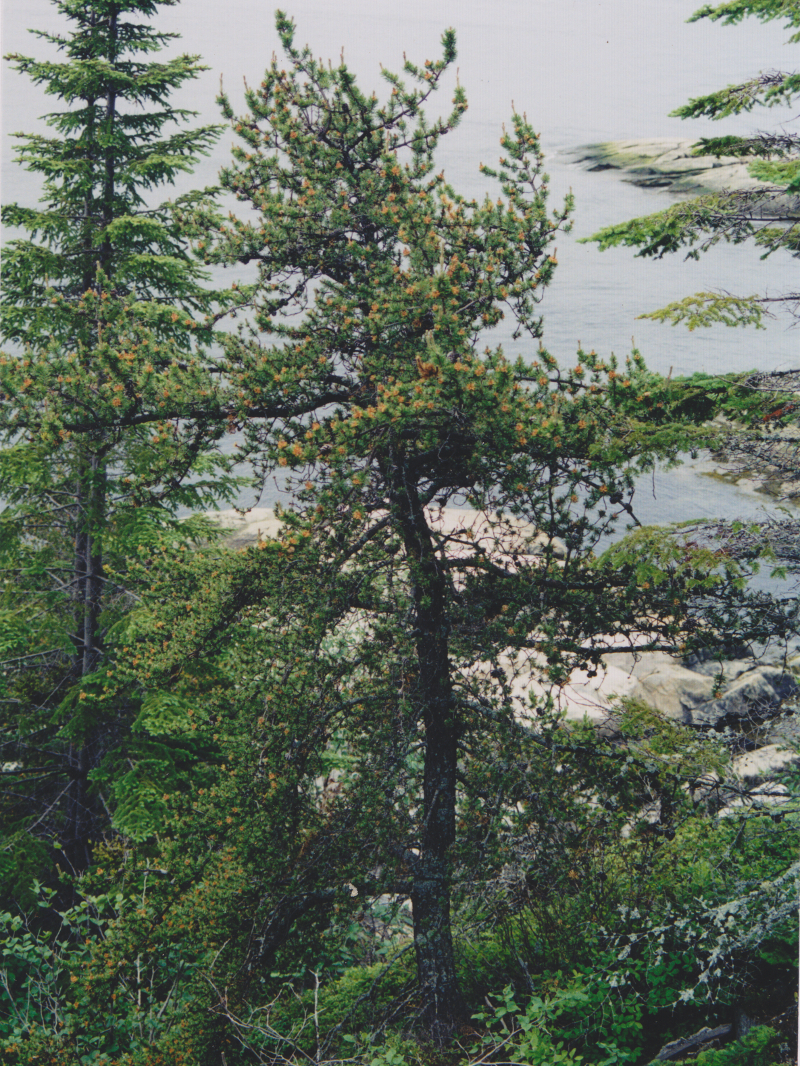 Pinus divaricata (Aiton) Dumont de Courset. 48° 09' 00" N - 069° 43' 00" O, rive du fleuve Saint-Laurent, Pointe de l'Islet, Tadoussac, le mardi 19 juin 2001, Pinus_divaricata_20010618_15_800.