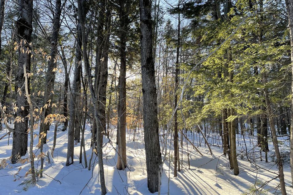 Forêt laurentienne : Fagus grandifolia Ehrhart, Tsuga canadensis (Linné) Carrière  et autres essences de bois, 46° 39' 29.7" N - 072° 19' 06.5" O, Mauricie, MRC Les Chenaux, Saint-Prosper-de-Champlain (Municipalité de paroisse), route de la Station, 1442 le lundi 24 janvier 2022, Fagus_grandifolia_011_950_633.
