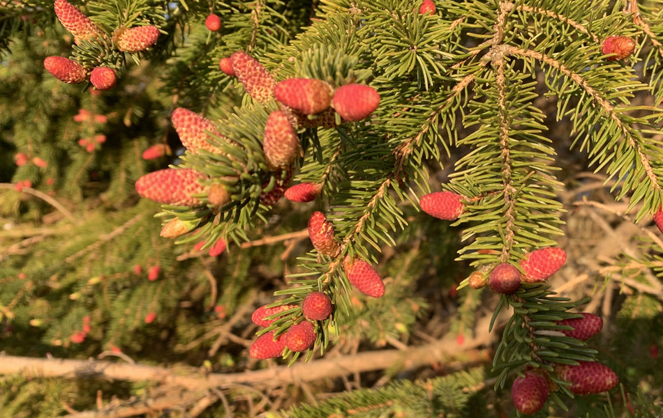 (longueur 6-10 cm), violacés et fortement résineux, arrivant à maturité dès