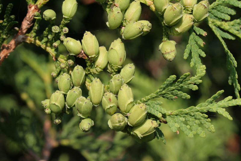 (a) cônes, (b) face dorsale d'une écaille, (c) graines sur face ventrale d'une