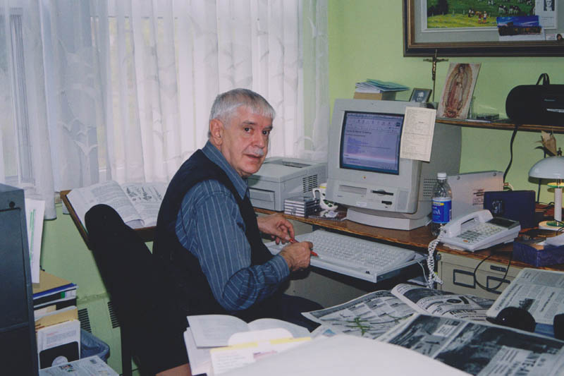dans son bureau, Marcel Blondeau m'explique son système informatique pour la classification des plantes, le jeudi 26 octobre 2000, photo 001026_1_800.