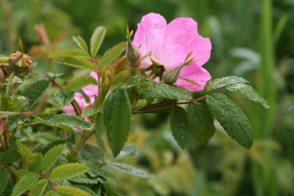 Rosa eglanteria Linné. — Rosier églantier. — Églantier ; Cébreur, par corruption de l'anglais sweetbrier. — (Sweetbrier). 46º 35' 22,7" N - 072º 15' 24,2" O, Mauricie, MRC Les Chenaux, Saint-Prosper, route des 1er et 2e rangs Saint-Édouard, 08:13 le lundi 6 juillet 2009, Rosa_eglanteria_013_950.